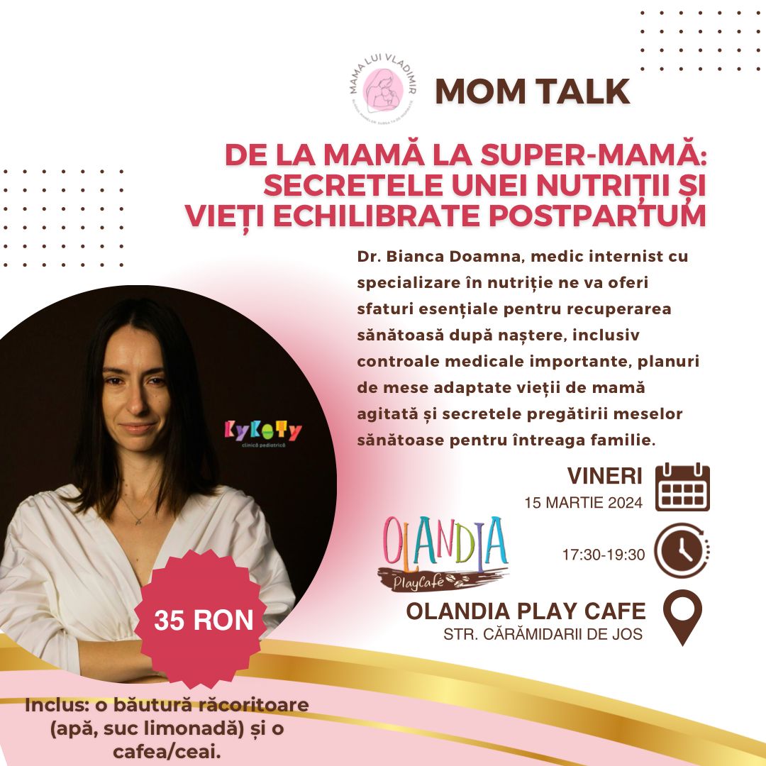 Discutăm detaliat despre schimbările ce apar în viața noastră o dată cu apariția copiilor. Cum putem să ne echilibrăm și să avem un stil de viață sănătos in ritmul alert cotidian. Vă aștept cu mare drag!